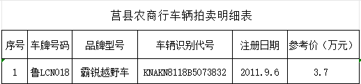 11月3日山東莒縣農商銀行霸銳越野車一輛拍賣公告