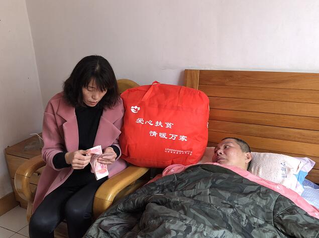 2月26日,正值2018 新春佳節(jié)之際,山東省扶貧開發(fā)基金會(huì)秘書長王景輝,洪力網(wǎng)副總經(jīng)理?xiàng)瞵摚泵貢L、山東天使健康救助聯(lián)盟秘書長、山東廣播電視臺(tái)《公益山東》副制片人晁玉萍等在山東省血液中心獻(xiàn)血辦主任王淑榮的陪同下,專程從濟(jì)南趕往淄博市張店區(qū)看望和慰問因重病陷入困境的無償獻(xiàn)血者張明豹。